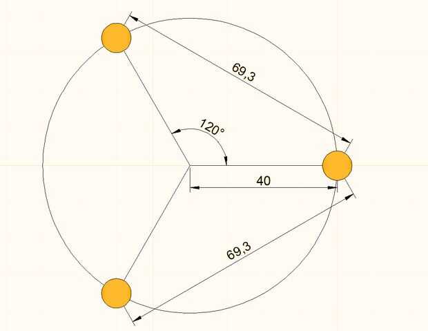 Vamos a centrarnos en la base. Para colocar los tres agujeros de mirar el esquema, si no tienes un goniómetro simplemente Mida las distancias entre los agujeros y compruebe que estén centradas en la base.