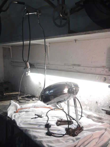 -un there´s que algunas partes pequeñas como brasscrews, Textiles cubiertos los cables, un portalámparas de latón, un pedal...