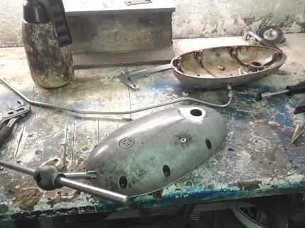 -El cuerpo está hecho de dos halfves de un 60 Eastblock motor de la motocicleta, una Jawa 175/Cz 175