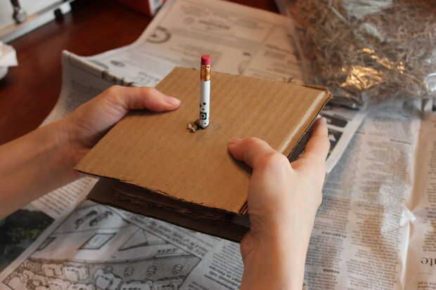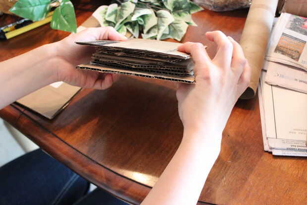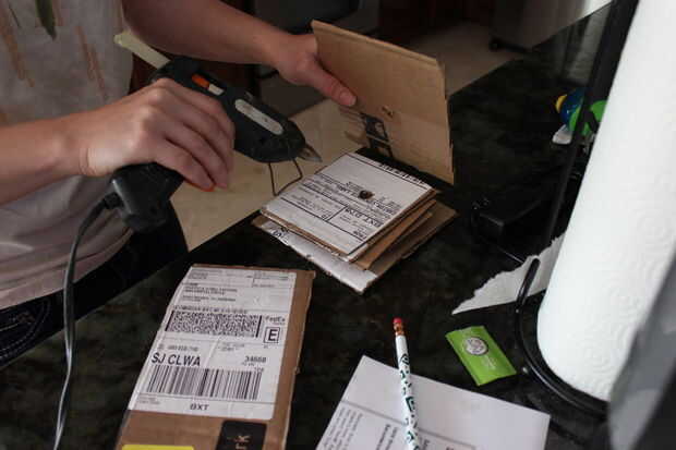 pegar todas las piezas de cartón junto con una pistola de pegamento. Asegúrese de que los orificios se alineen. Luego realizar tus lotes de maché de papel uno!