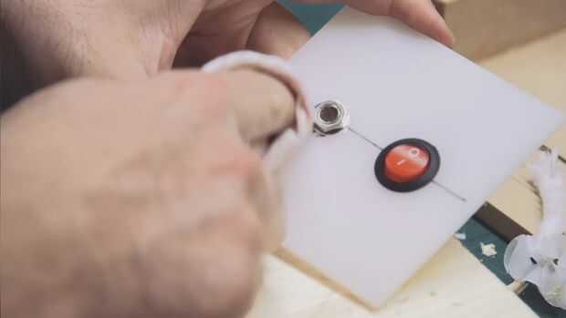 Taladré agujeros para un interruptor y una toma de teléfono en una pieza cuadrada de acrílico. La mayoría los interruptores tienen un contador del tornillo con que os adjunto el la hoja de acrílico.