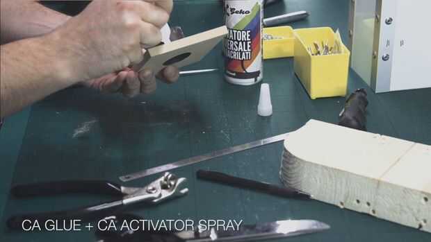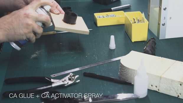 Tome el enchufe y pegamento en el agujero que ha perforado. Puede utilizar cualquier pegamento adecuado para esto, pero me ciano acrilato con algún activador para una adherencia instantánea (no me gusta esperar cola curar ;))