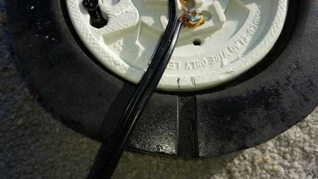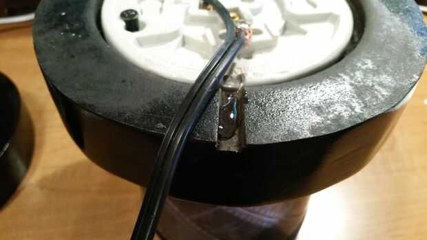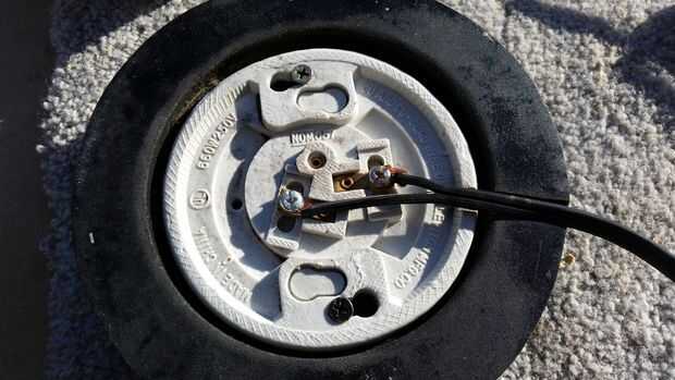 Después de todo se dijo y se hecho, descubrí que el cable estaba tocando todavía la base de la lámpara de porcelana, haciendo que no sientan nivel. Usé mi rueda de corte de dremel para cortar una ranura para el cable.