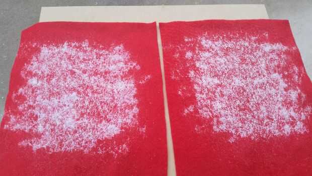 Tiempo para usar algún adhesivo en aerosol para fijar el fieltro a su base. Deje secar y recortar.