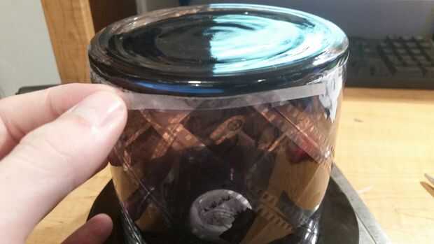 Usando cinta adhesiva más doble cara, aplicar un borde alrededor de la parte superior e inferior de la vasija una transición agradable desde el vaso a los negativos.