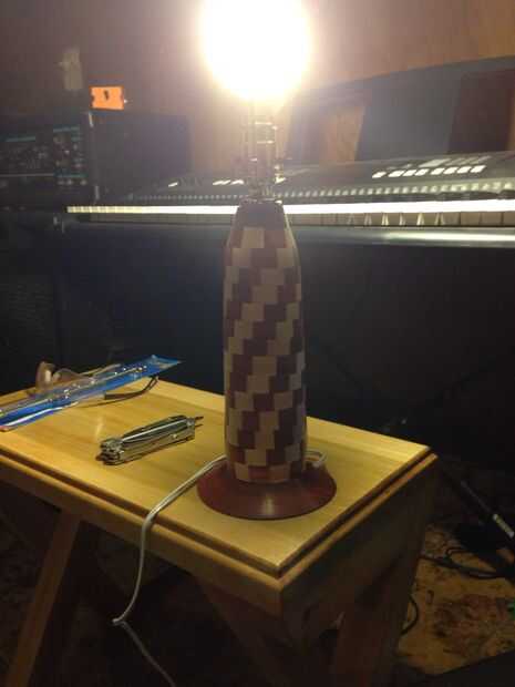 Esta lámpara está hecha usando un cortador del laser y una impresora 3D.También contiene un conector de luz con un interruptor y un enchufe.Herramientas y suministros-Impresora 3D-3D-filamento (... gr.)-Lasercutter-3,6 mm acrílico y madera contrachap
