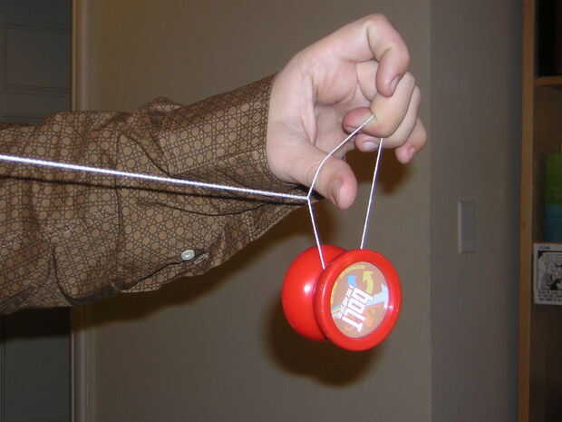 Usando su mano alzada, agarra la cadena cerca de 3 pulgadas desde el yoyo y desenrolle la cadena.