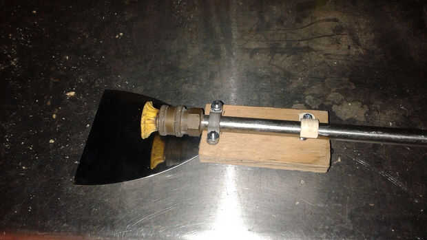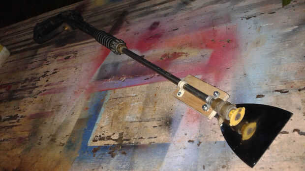 Montara el bloque de madera en la lavadora a presión con tornillos y tuercas con arandelas de seguridad. es importante instalar la boquilla de pulverización para que el ventilador es paralelo a la hoja.