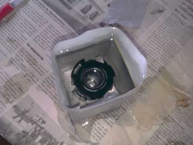 A la derecha después de mezclar la resina con el catalizador, vierta en el molde. Poner la primera pieza de la abertura con cuidado entonces.