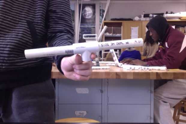 P: Tomar un conector 45 y dos tubos de 5 pulgadas y les mate.