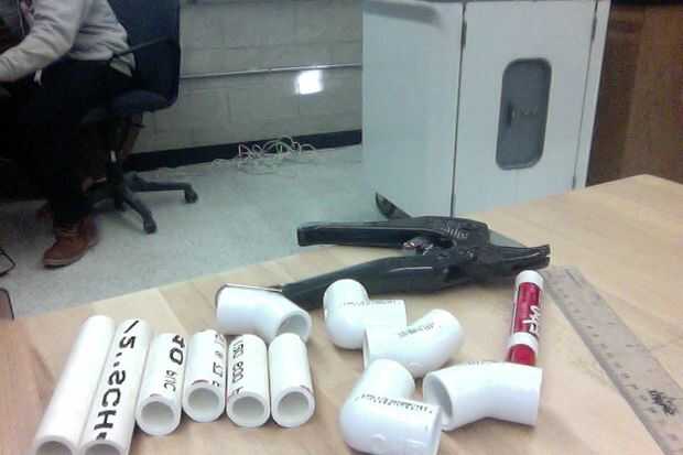Se necesita: Regla Marcador Cortador de PVC 2 tubos 4inches de largo 1/2 pulgada de grueso 4 tubos 2inches largo en 1/2 pulgada de grueso 3 conectores de codo de 90 grados 2 conectores de codo de 45 grados