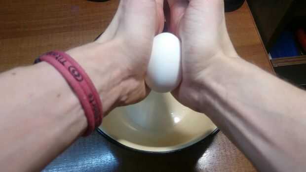 Yo: tratar de squeez un huevo con las dos manos, tratar de chocar un huevo con una mano y tratar de destruir un huevo con la máquina de exprimir de huevo! Se trata de: una presión depende de área de uso de la fuerza, así que cuanto más grande un área, menor presión en un huevo. Las palmas es suave y cubren completamente un huevo, por lo que la presión es muy pequeña, y diseño de huevo se hace por la naturaleza para soportar una carga distribuida como exprimiendo.