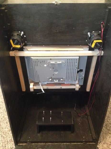 Este es mi costumbre diseñado y hecho Zelda Tv con altavoces incorporados. doblan la parte superior y los lados y hacia fuera para 2 altavoces 6 x 9 y dos altavoces de centro explosión el salón. en total yo estado trabajando en esto los fines de sema