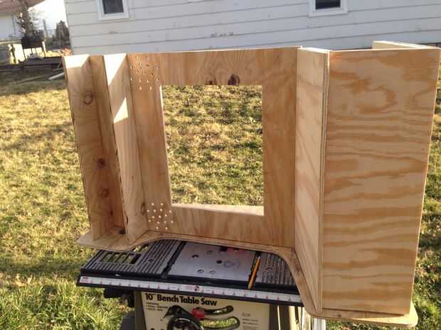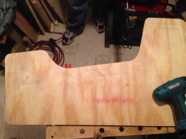 Que se apaga solo el cuadro en los planes iniciales, hemos decidido donde todo debe sentarse a través de ensayo y error, poner la sección de bisel/marquesina junto con el tablero frontal de la sección y control contra la sección de un lado hasta que encajen bien. En ese momento remontar alrededor de los refuerzos en la sección lateral, luego retirar las piezas y taladrar agujeros piloto donde se sentarían los frenillos.
