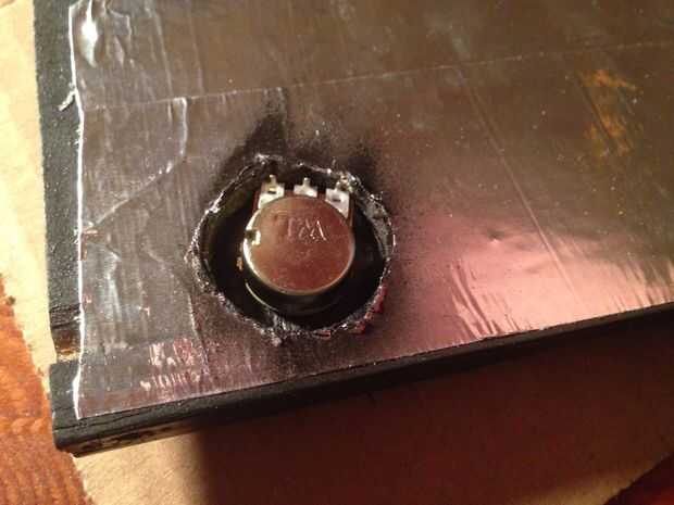 He instalado el pote de 1 k en la base de la carpa para control de volumen fácilmente accesibles. Utilicé un conector de 3 clavijas servo para una rápida desconexión en el otro extremo de los cables.