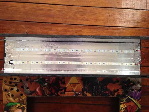 Cinta del papel de aluminio fue utilizado para obtener un buen desembolso de luz uniforme dentro del área de la marquesina. Usé 2 tiras de 5050 SMD LED blanco cálido a la luz de la marquesina. Traté de blanco fresco, pero con los tonos de la tierra en el arte de la etiqueta blanco cálido parecía mucho mejor.