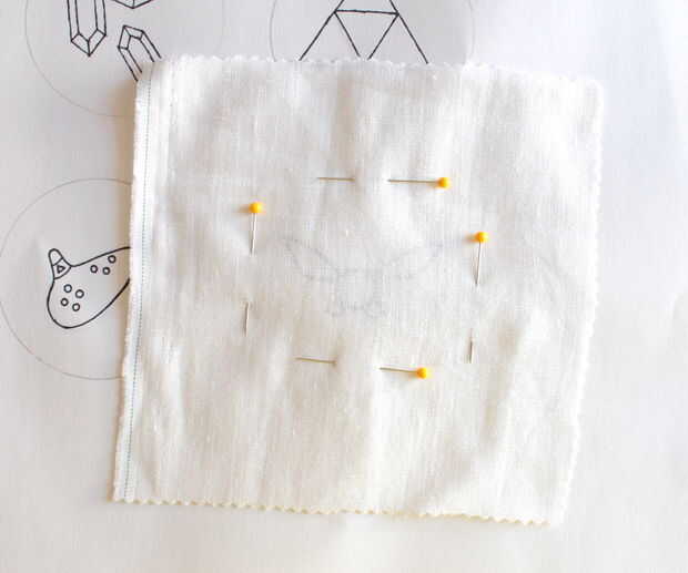 Luego, prender un cuadrado de tela sobre el bordado. Si usas a una tela delgada que se puede ver a través de él lo suficientemente bien como para trazar. Si no es así, manténgalo contra una ventana o sobre una caja de luz.