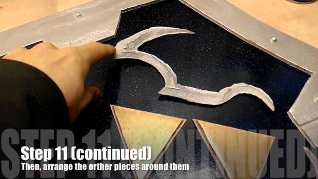 Antes de pegar, es la hora de secar colocar sus piezas en la base del escudo.