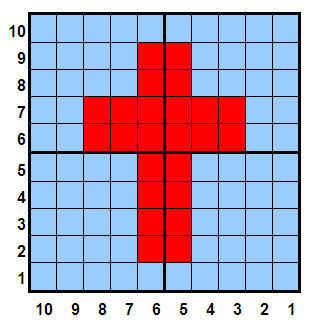 Vamos a hacer una simple muestra de 10 x 10, utilizando un diseño cruzado. La imagen de la Cruz va a ser nuestro patrón. Puede que desee imprimir, por lo que puede marcar cada línea como se termina.