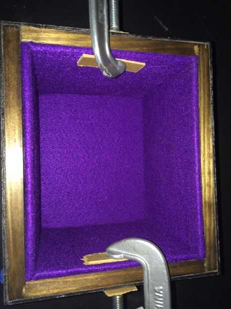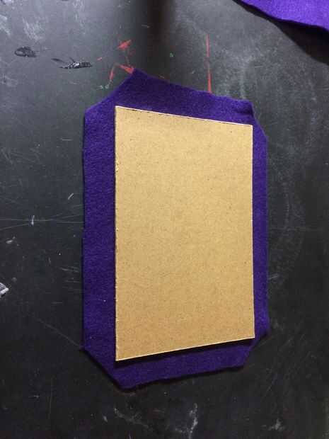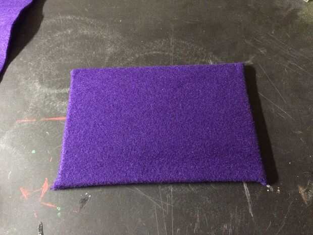 Color favorito de mi esposa es morado así que añadido algunos fieltro en el interior. Lo hice por cortar unos rectángulos de cartón prensado y pegar fieltro sobre ellos. Luego pegué a la junta dentro del pecho.