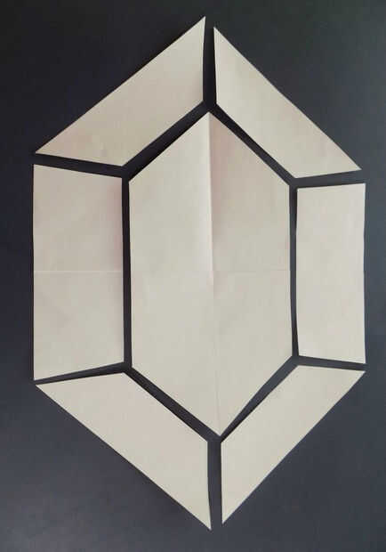 Lo primero que tenía que hacer era mi patrón. Comenzó con una maqueta digital, luego volvió a dibujar en una hoja grande de papel de cuaderno de bocetos de 24" de altura. Comencé doblando mi papel en cuartos para tener cuadrantes para asegurarse de que todo estaba aún. Luego corté todas las piezas aparte con la ayuda de un cuchillo la regla y x-acto del metal.