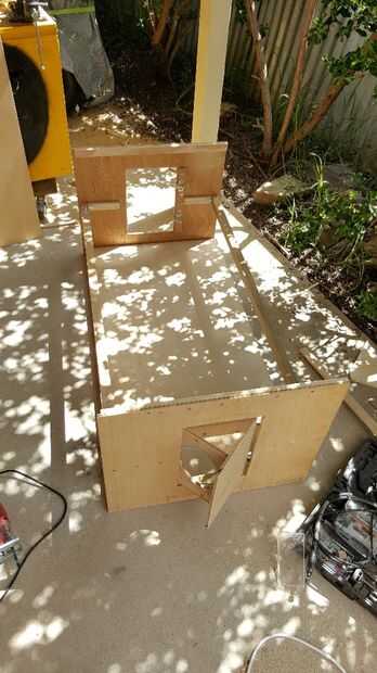 Esta es una parte que tiene un poco de tiempo. comenzar con tener los lados corte realizado. tornillo y cola toque un extra de madera para el interior de la parte superior de los lados, pero no están por encima del borde como la parte superior del gabinete va a quedar en esto. el estante en el midde puede ser cualquier altura, me aseguré que la brecha fue mayor en la parte superior para que mi gordo Amp integrarse sin preocupaciones. Asegúrese de que todas las longitudes de los lados son cuadradas. tornillo longitud cuadrada de madera entre las dos partes. en la parte posterior puede atornillar ellos ras en el borde pero en el frontal deja una brecha para permitir que la puerta de entrada a encajan muy bien. una vez que la madera entre partes son en uso metal L soporte para estancias Plaza (y atorníllelo a través de los lados también). Ponga algunos pedazos adicionales de la madera en la cara lateral para que el estante como tanto estructura como puede. Deje suficiente espacio para que los lados pueden borrar. una vez que usted puede tamaño inicio hasta cuánto espacio necesita tener lados abrir y cerrar (Asegúrese de tomar en cuenta el tamaño de los altavoces también. los anaqueles pueden ser al ras con la parte trasera pero nada avanza demasiado lejos o no cerrar la puerta.