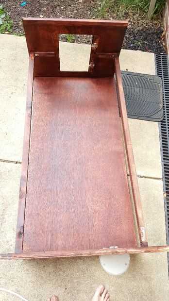 He utilizado un barniz utilizado para las cubiertas. el color que utiliza es de cedro y sólo en capas para obtener un aspecto rústico oscuro agradable. desarmar todo, sobre todo la capa en ese barniz, dejar secar durante unos segundos (unos 10) y pat hacia abajo con un trapo limpio, obtendrás la pesada húmeda las partes oscuras y dejará las piezas remojadas, que se secarán muy rápido, repita hasta que feliz con el color. dejar secar durante unas horas. Creo que lo dejé toda la noche antes de capa clara. i utilizar el mismo deck de marca claro para el barniz, 2 capas de claras y utilizadas 4 capas en la parte superior y usado para impresionante lisa.