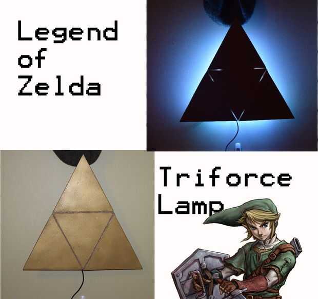 SOOOOoooo para 18 años de edad de mi hermana quería darle algo especial que podría utilizar en su dormitorio del futuro colegio. Ella es un gran fan de la leyenda de Zelda, así que pensé que sería el mejor tema de presente de cumpleaños. Recibí la inspiración para hacer una lámpara de la Trifuerza para esto de un hombre que hizo algo similar, pero hizo una lámpara de batman, aunque el hecho de que es una lámpara y se eleva de las paredes es una especie de donde terminan las similitudes. Pero todavía usted debe comprobar fuera de su lámpara porque es bastante impresionante también. Aquí está el enlace: