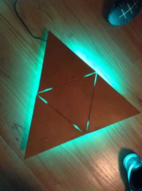 Colgar en la pared y palmadita en la espalda mientras admiras el buen trabajo que has hecho. Disfrutar de su lámpara hecha a mano de la leyenda de la Trifuerza de Zelda:)!