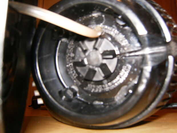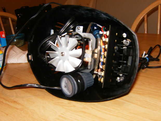 Ahora que tienes las piezas y la licuadora que necesita para abrir la parte inferior de la batidora donde se almacena el motor. La tapa debe estar en la parte inferior de la licuadora.  Sólo debe haber unos tornillos para poder salir.  Una vez que lo tengas abierto necesita ver cómo se ajusta la bomba.  Para mí no tuve que quitar cualquier cosa dentro.  La bomba era lo suficientemente pequeña como para caber entre el motor y la pared.  Si su bomba no encaja, entonces puede que necesite quitar algunos elementos dentro de la licuadora o modificar la bomba para conseguir que se ajuste.   La manera de la válvula también se alojaran en esta área así que asegúrese de también hay espacio suficiente para él.
