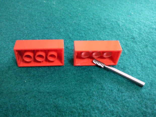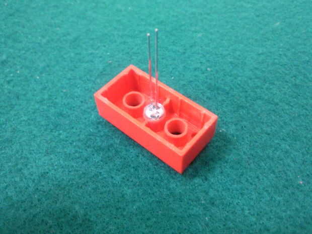 Es necesario recortar el interior del ladrillo para dar lugar a la parte inferior y los pines de los LEDs