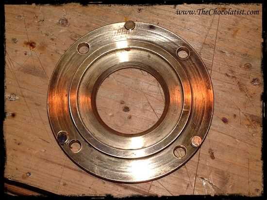 • un pesado anillo de cobre amarillo para el fondo, algo de madera y tornillos