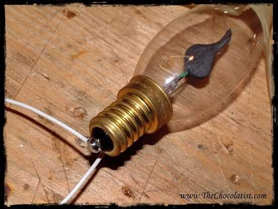 En primer lugar preparé la bombilla parpadeante y la unidad de alta tensión, para asegurarse que funciona. Soldar dos cables a la bombilla, uno para la parte superior de la toma de corriente y uno en la parte inferior. Entonces envolvió el encaje con cinta. Que tienes que hacer que muy bien, engendra no quieres tener 300Volts en el cuerpo metálico del farol - que podría perjudicar!!!!!!