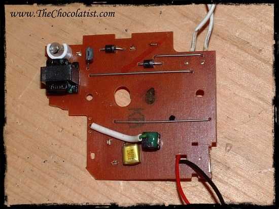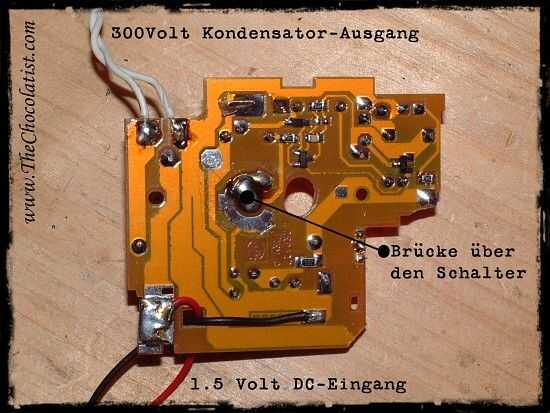 Como se puede ver en la fotografía es muy fácil convertir esa unidad. Despegar cuidadosamente el condensador, después que descargó. Luego de la soldadura de los cables de la bombilla a esta dos conexiones, donde antes el condensador estaba en.