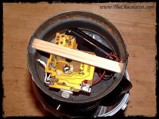 Perforar un pequeño agujero para el interruptor en el lado. Después de conecté el sistema electrónico para la lámpara y el interruptor.