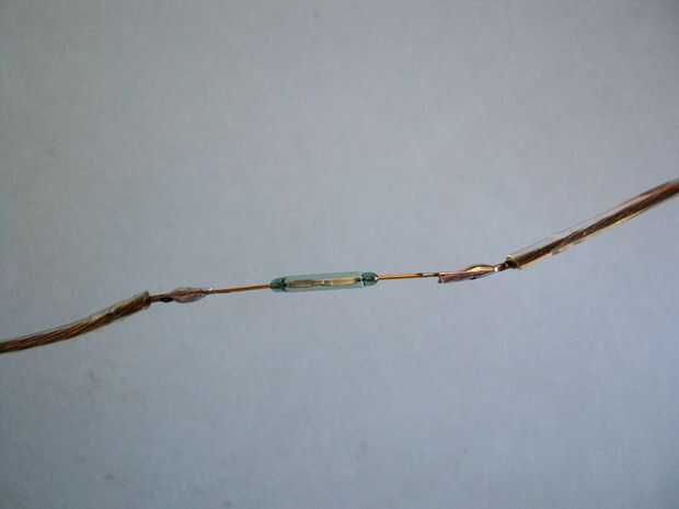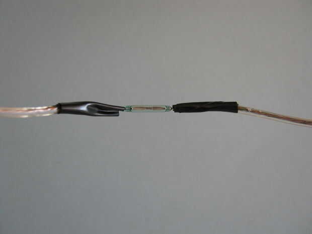 1. La soldadura de los extremos de los cables de extensión para el interruptor de láminas magnético como se muestra en la primera imagen.