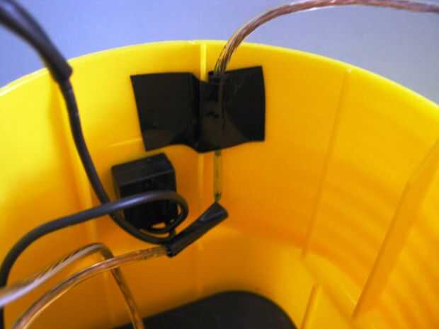 3. Usando cinta aislante, coloque el interruptor de láminas magnético en el interior de la caja cerca de la parte superior y el mango. Colocación del interruptor de lengüeta magnética es importante - para que la magia suceda que usted tendrá que traer los imanes cerca del lugar donde has conectado el interruptor. La ubicación ideal sería justo debajo del mango pero de la linterna que utiliza, no había habitación, por lo que coloca el interruptor en la parte superior cerca de la manija.
