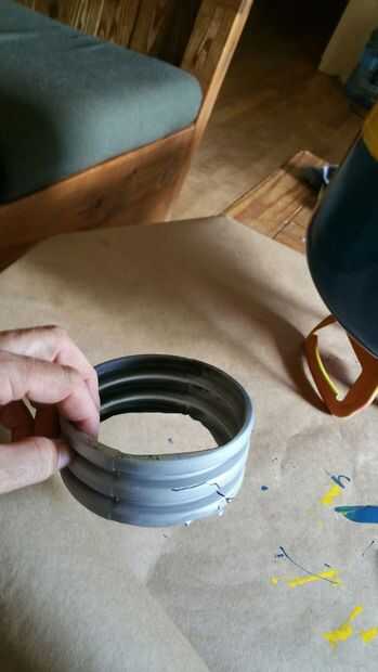 La criatura fue empedrada de una vieja cabeza de ducha, accesorios sin uso de una chimenea de gas, la parte superior de una caja de Eddie Bauer Watch, algunos cables y algunos el tubo del encogimiento. Los brazos y las manos están hechas de alambre y