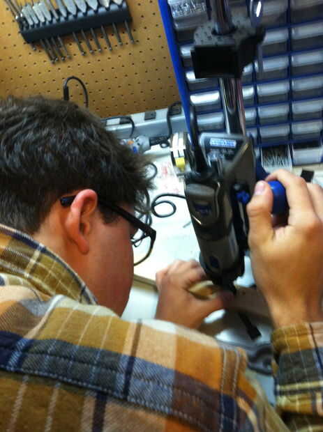 Cuando todo esté en su lugar, pegar el pecho del talón el talón usando pegamento o un epoxi 2 parte. El pegamento estupendo es mucho más fácil, pero epoxy tendrá un mejor agarre.