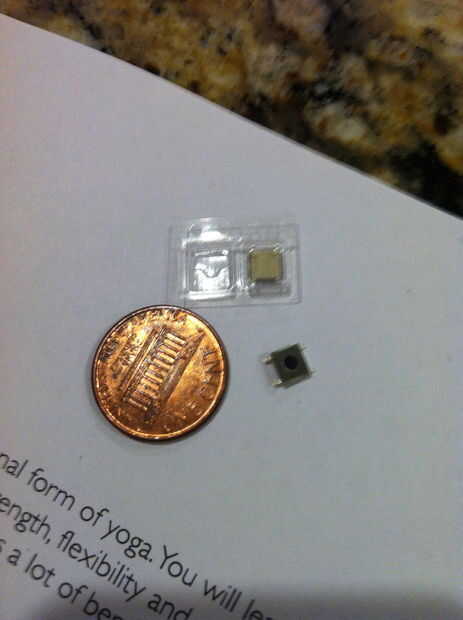 Momentáneo interruptores - compramos algunos interruptores momentáneos de montaje en superficie. Montaje superficial las cosas pueden ser bastante difíciles soldar si eres nuevo en todo... pero no realmente que mal. Ordenamos el MJTP1140TR cambia de didgikey.com, pero podría utilizar cualquier interruptor momentáneo táctil. La selección en Radioshack y Fry es bastante meh, así que intento digikey para evitar la frustración. Asegúrese de que obtendrá el derecho de clase de interruptor momentáneo... es decir, se enciende cuando se presiona y esta normalmente apagado.