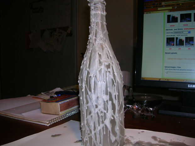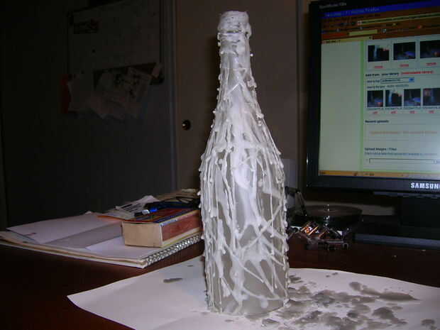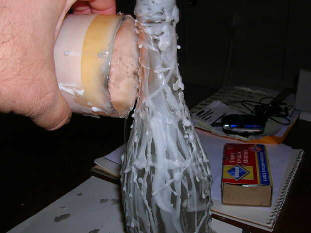 Sólo sigue vertiendo la cera sobre la botella hasta que esté satisfecho con la cantidad de acumulación.