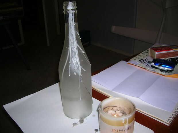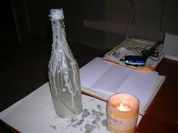 Que poco de cera del derretimiento en la parte inferior y luego verter en la parte superior de la botella.