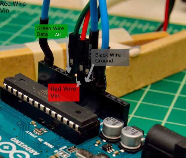 Monte el Arduino al final de la estructura con las conexiones de tira de LED.
