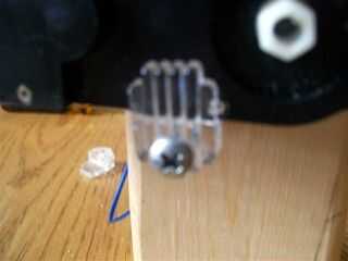 Por último, os adjunto la devanadera de la energía al otro lado, utilizando dos de los tornillos originales y un viejo pedazo de montaje de espejo que he encontrado en el garaje.