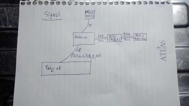 Primero conecte el sensor de temperatura, reloj de tiempo real, OLED pantalla y relé de tablero a Arduino. Siga los esquemas para esto.