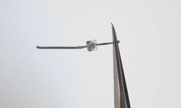 Con un par de alicates o pinzas de rizar los extremos de los LEDs y las resistencias por lo que son fáciles de coser.
