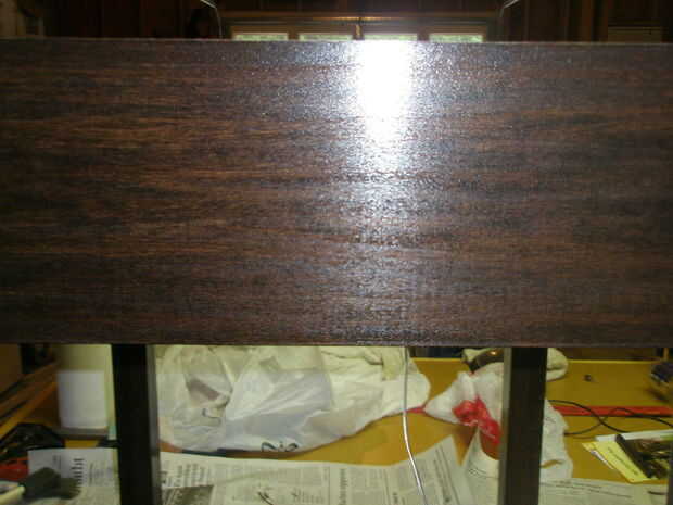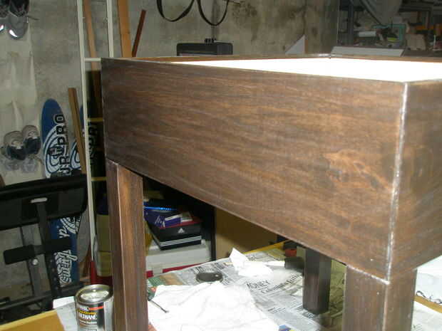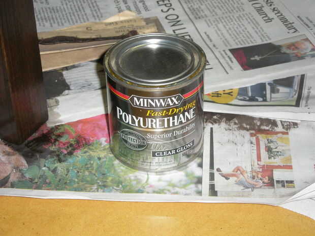 Después de que la mancha se ha secado, cubra toda la tabla en varias capas (3-4) de poliuretano para dar la mesa extra protección y resistencia de agua permitiendo que cada capa se seque antes de aplicar la capa siguiente.