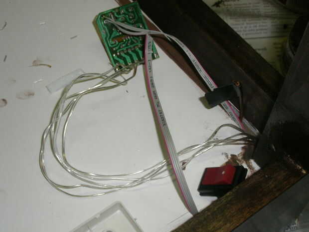 A continuación, la soldadura de uno de los cables de nuevo (o viejo si usted mantuvo) cable de salida a uno de los originales para el cable de salida en el tablero. El otro cable a un lado del interruptor de encendido/apagado de la soldadura. Otro cable al otro lado del interruptor y el otro botón en la Junta de la soldadura. Luego, tome más cable y soldar los cables del interruptor pulsador a sus correspondientes teclas en el tablero principal.