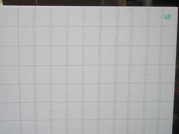 Por último, trazar un guión cada pulgada dentro de las líneas delgada de 3/16 de pulgada que manera abajo. Esta es la línea a que usted tendrá ranuras de corte en cada pieza.