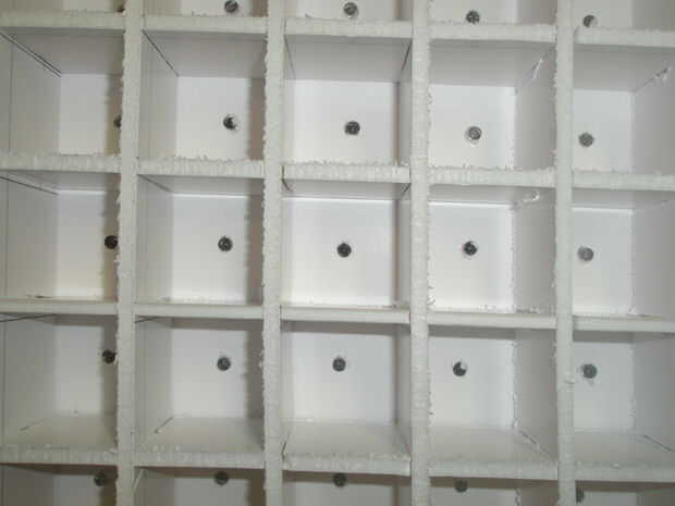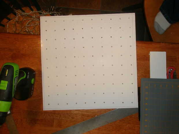 En primer lugar, dibujar líneas de 1/4 de pulgada de cada lado, esto deja espacio para la base se deslice en la madera. Marque un punto 3/4 pulgadas de una de las líneas que marcó y 3/4 pulgadas hacia abajo de la línea al lado de la línea anterior, y luego cada 1 1/2 pulgadas por 3/4 pulgadas hacia abajo de las líneas que marcó hasta llegar al otro lado. Debe haber diez uniformemente puntos del espacio. Bajar 1 1/2 pulgadas y repetir lo acabo de hacer. Continuar haciendo esto hasta llegar a la parte inferior. Una vez que usted haya terminado, usted debe tener 100 puntos espaciados uniformemente que abarca toda la plaza entera del tablero de la espuma.